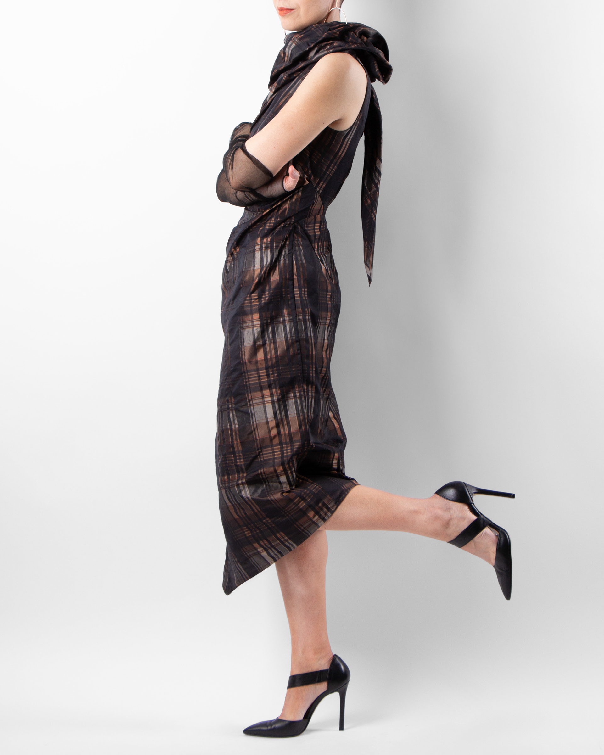 Unmistakably chic and effortlessly wearable. This figure-flattering dress features a sculptural tail collar that can be styled in multiple ways — wrapped around the neck, tied at the nape, or casually undone. Designed for those moments when you want to dress up yet stay comfortably elegant. Lightweight, easy-care fabric: machine-washable and wrinkle-friendly. Unlined.